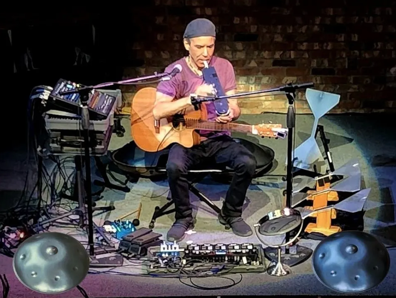 Two of Matt’s extraordinary instruments include the Electronic Valve Instrument (EVI) wind synth, and the Hang; an acoustic flying saucer-shaped instrument known for its hauntingly beautiful sounds. He’s toured extensively, offering his “AmeriCosmos” multimedia performance and his “Music and Sound Alchemy” experience, which both feature a great deal of improvisational compositions with Matt’s interplay between 12 different instruments and a looping device.